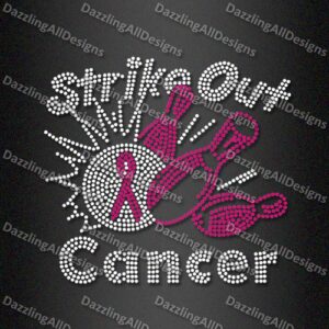 Strike Out Cancer Rhinestone Transfers for Support Tshirts designs. DazzlingAllDesigns provides you the top-quality heat transfer rhinestones. Can’t wait to decorate your shirts with such special transfer in several colors? Get a quote on this item or contact us for custom your own designs