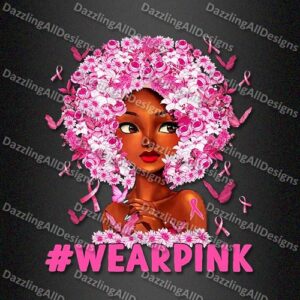 Wear Pink for Breast Cancer Afro Girl DTF Heat Transfers